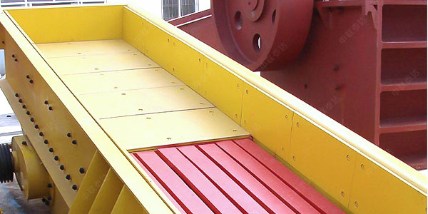 振動給料機又稱振動喂料機。該系列振動給料機,是專為破碎篩分中粗破碎機前均勻輸送大塊物料而設計的新型振動給料機。該振動給料機采用雙偏心軸激振器的結構特點,保證設備能承受大塊物料下落的沖擊,給料能力大。在生產流程中可以把塊狀、顆粒狀物料從貯料倉中均勻、定時、連續(xù)地給到受料裝置中去,從而防止受料裝置因進料不均而產生死機的現象,延長了設備使用壽命。
